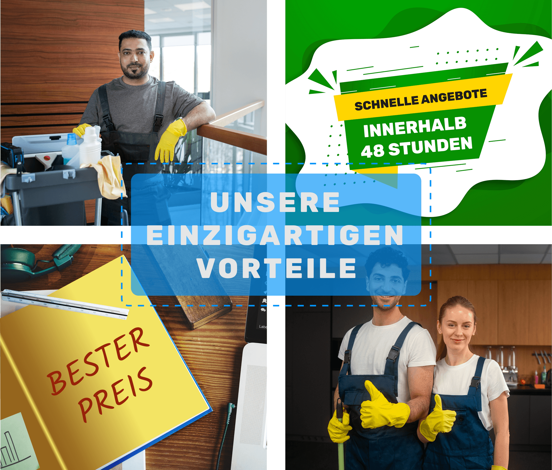 Kostenlose Vor-Ort-Besichtigung und detailliertes Angebot binnen 48 Stunden. Keine Wartezeiten, keine unklaren Preise – Sie erhalten Planungssicherheit für Ihr Reinigungsbudget
